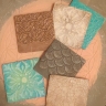 В прорези этого универсального инструмента удобно наносить краску различными способами: спонжем, круглой кистью или аэрографом. Трафарет легко вдавливается в глину, а также подходит для декоративной штукатурки. Для нанесения акриловых фактурных гелей наилучшим способом является использование шпателя, который также удобно использовать для удаления излишков краски без повреждения трафарета.