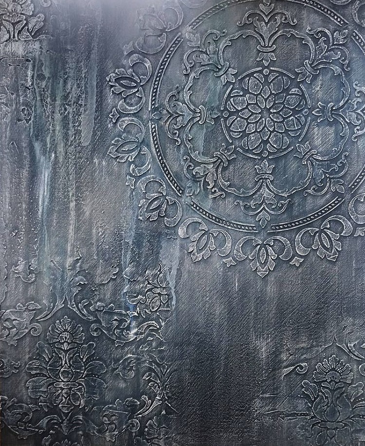 Этот трафарет моя особая Любовь! С помощью штукатурки наносила рисунок с помощью этого трафарета на стену, декорировала дверки на шкафу, тоже объёмный рисунок. Декорировала чехлы для подушек с помощью текстильной краски. Рисунок получается очень ажурным. На стене выглядит будто кружево.